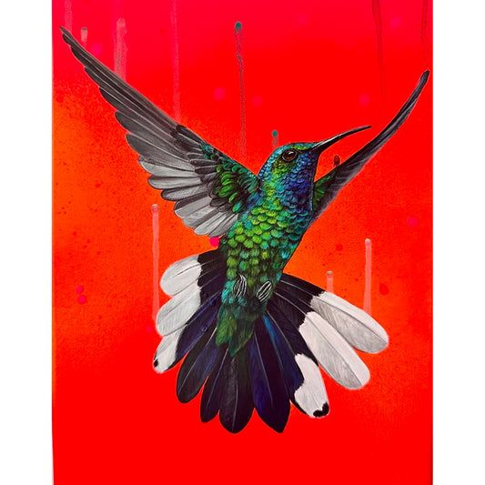 LOUISE McNAUGHT 'White Tailed Sabrewing Hummingbird' (2025) Original on Skateboard Deck
