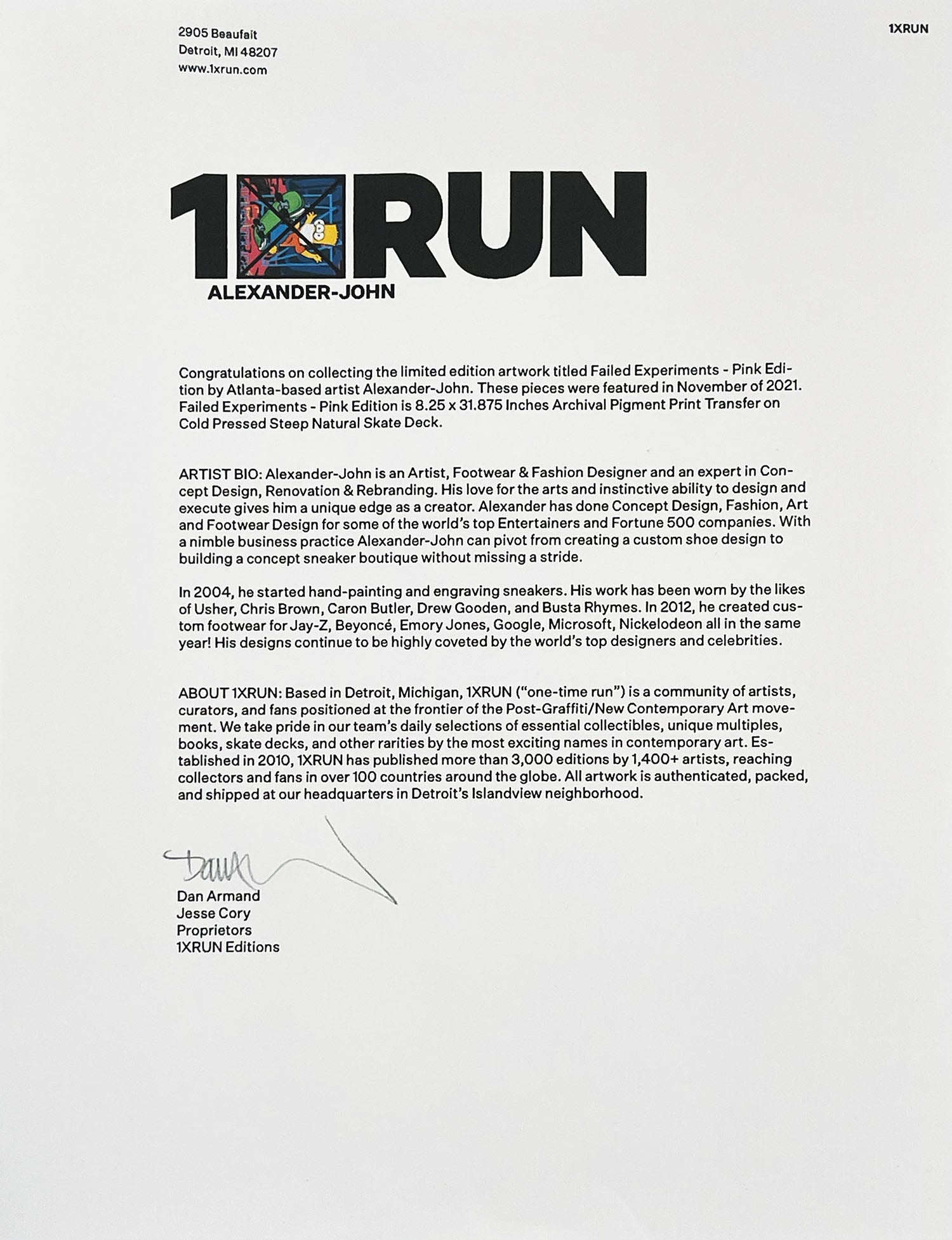 ALEXANDER-JOHN 'Failed Experiments' (2021) Skateboard Deck (pink)