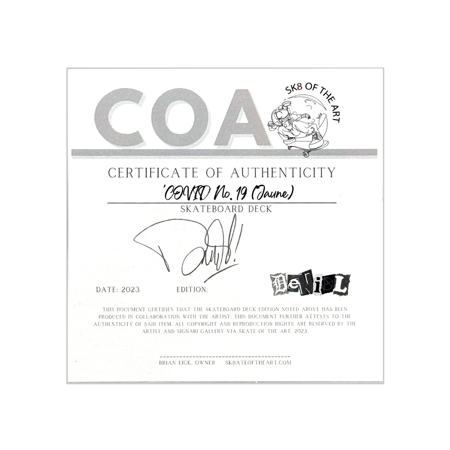 DENIAL x SK8 of the ART 'COVID No. 9' (2023) Skateboard Deck (jaune)