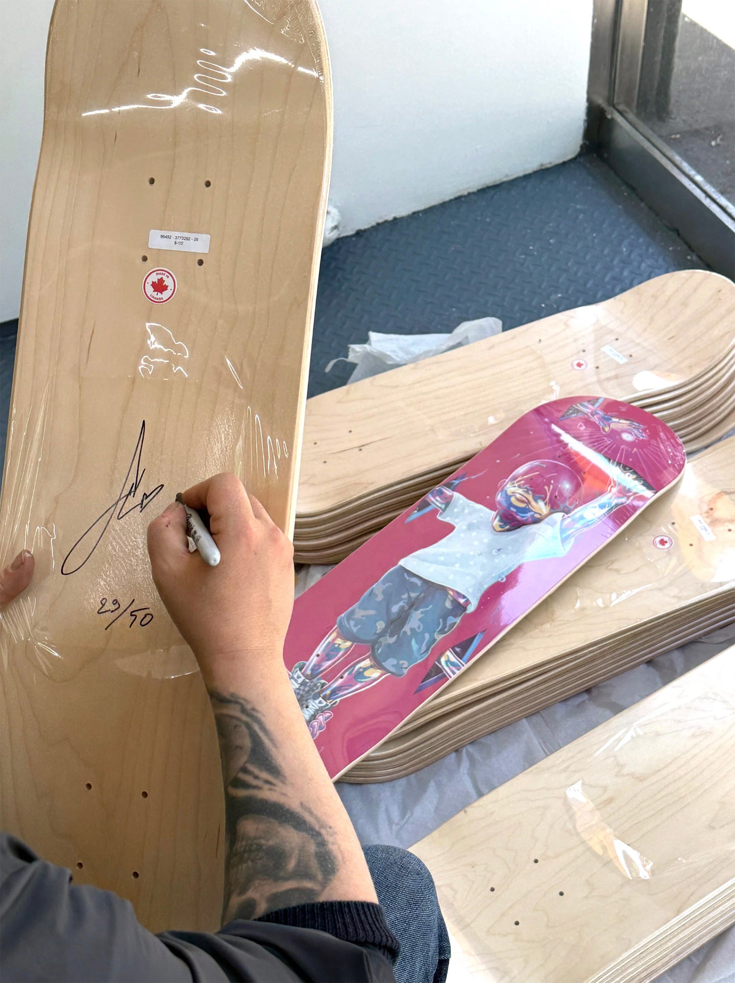 Hand-signed and numbered by the artist on deck top.