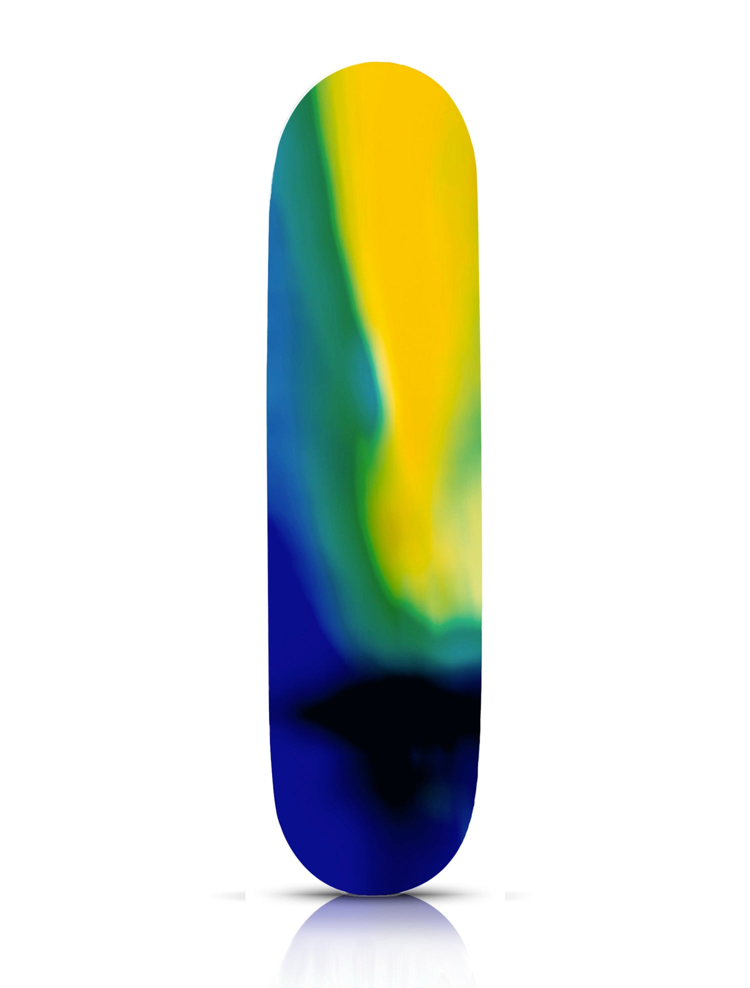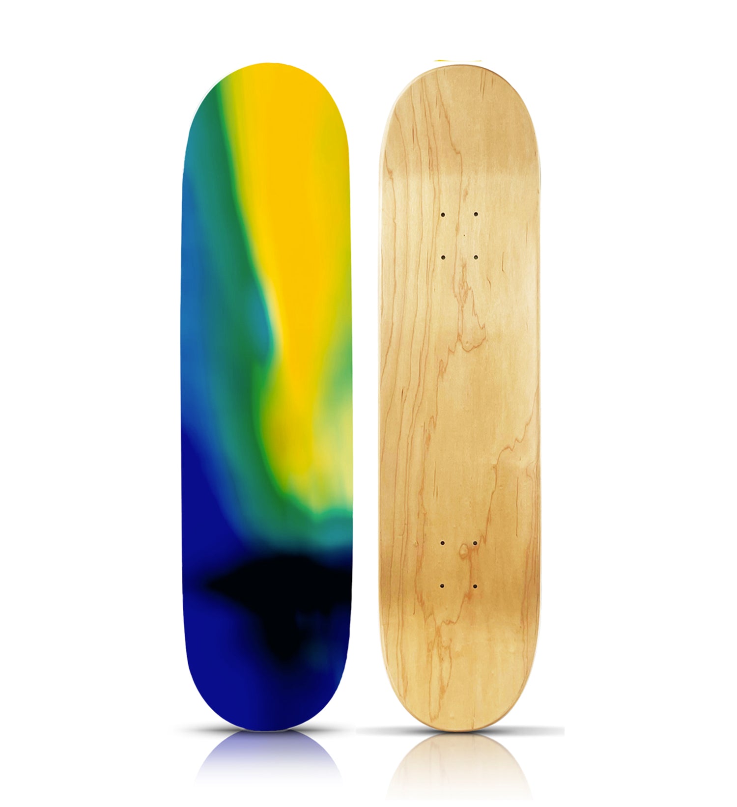 Archival pigment print transfer on 7-layer Canadian Maple hardwood skate deck.