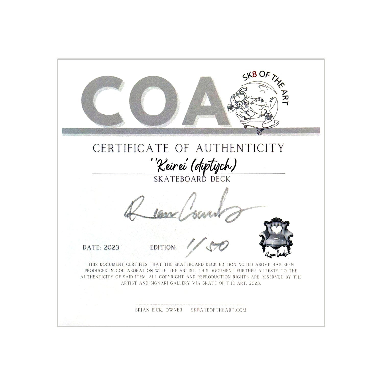 ROAMCOUCH x SK8 of the ART 'Keirei' (2023) Diptych Skateboard Deck Set