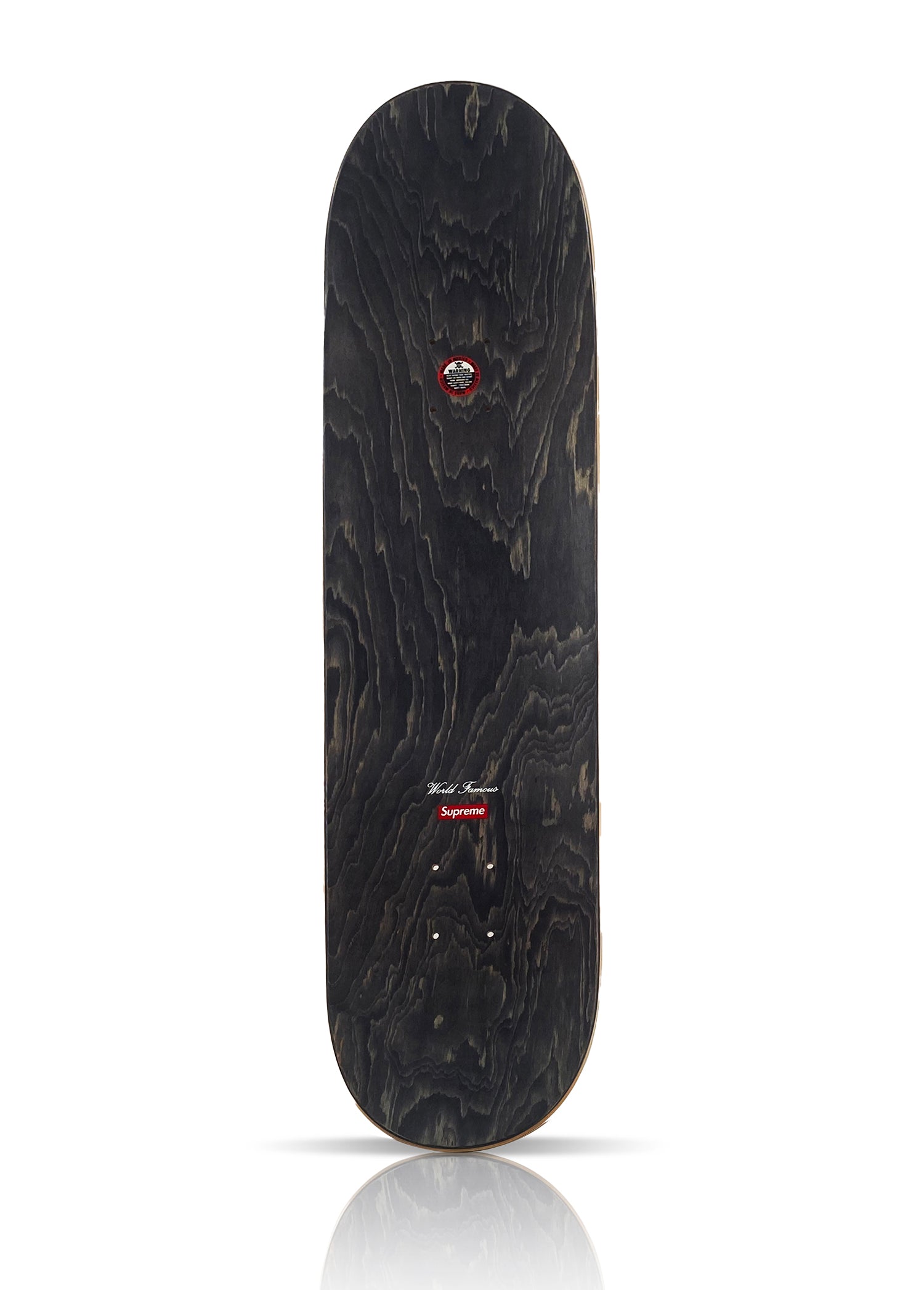 Screen print on 7-ply Canadian Maple hardwood skate deck.
