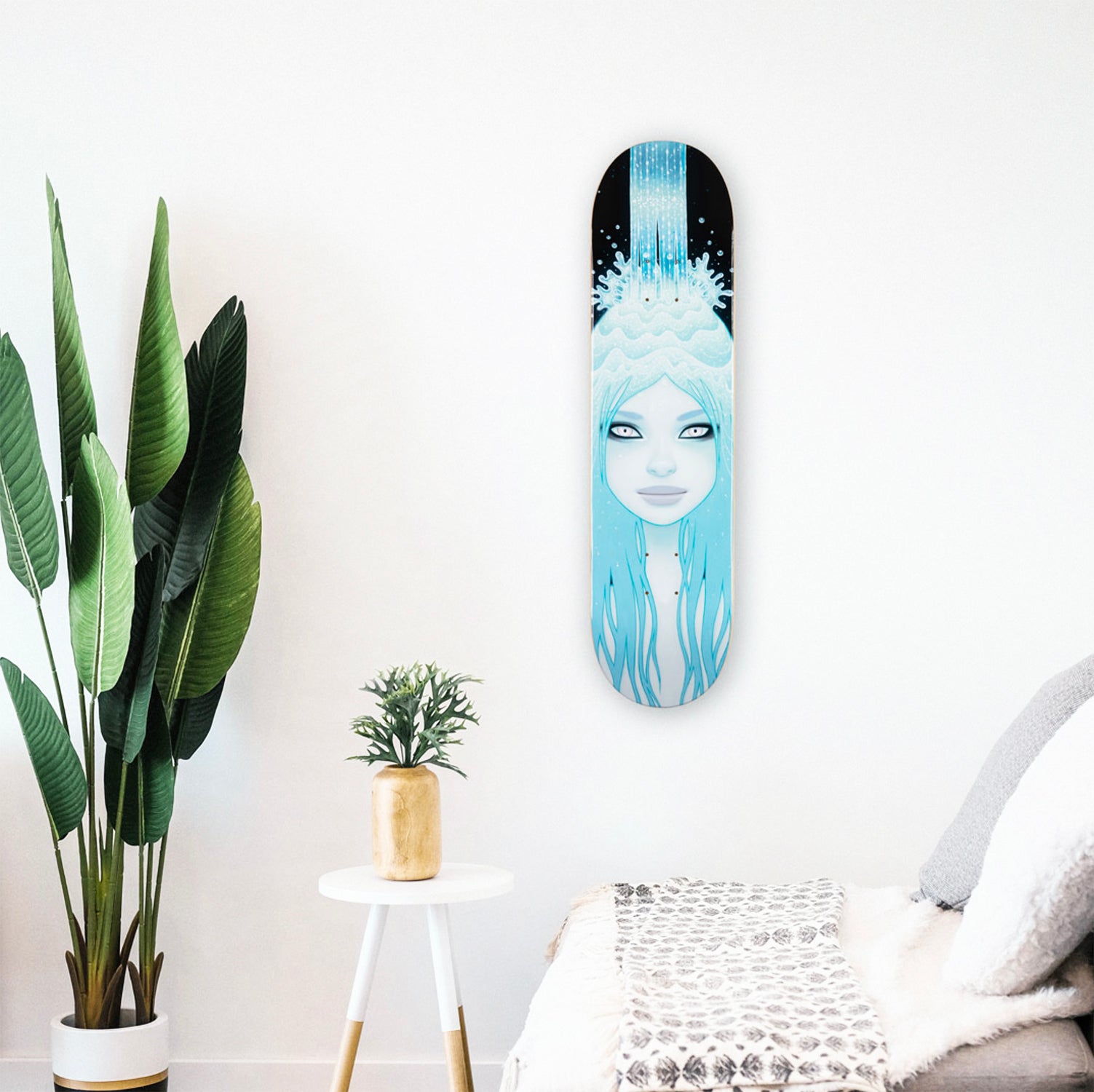 Archival pigment print transfer on Cold-Pressed Steep Natural skate deck.